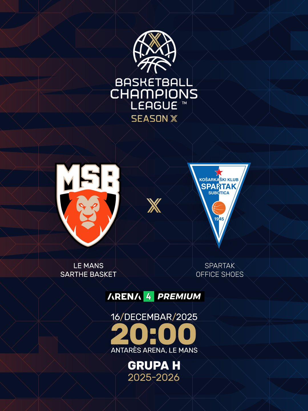 U utorak, 16. decembra u Francuskoj, u 20 časova odigraće se utakmica 6. kola BCL – FIBA Lige šampiona, Le Mans Sarthe Basket – KK Spartak Office Shoes.